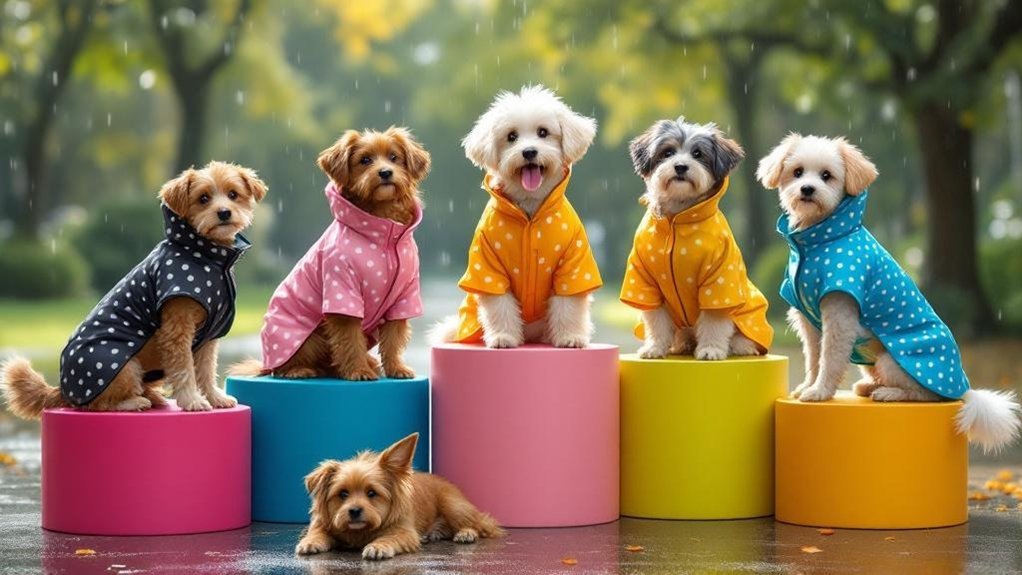 When choosing a dog raincoat, you should consider several key factors. Think about the size and fit to guarantee comfort, the material quality for durability, and the waterproof features to keep your pup dry. Don’t forget about visibility and safety, as well as how easy it is for your dog to wear.